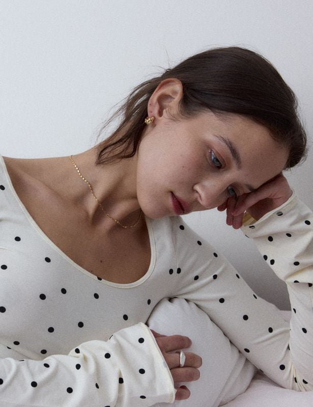 光を受けるたびにさりげなく輝く、上品な存在感のネックレス。
